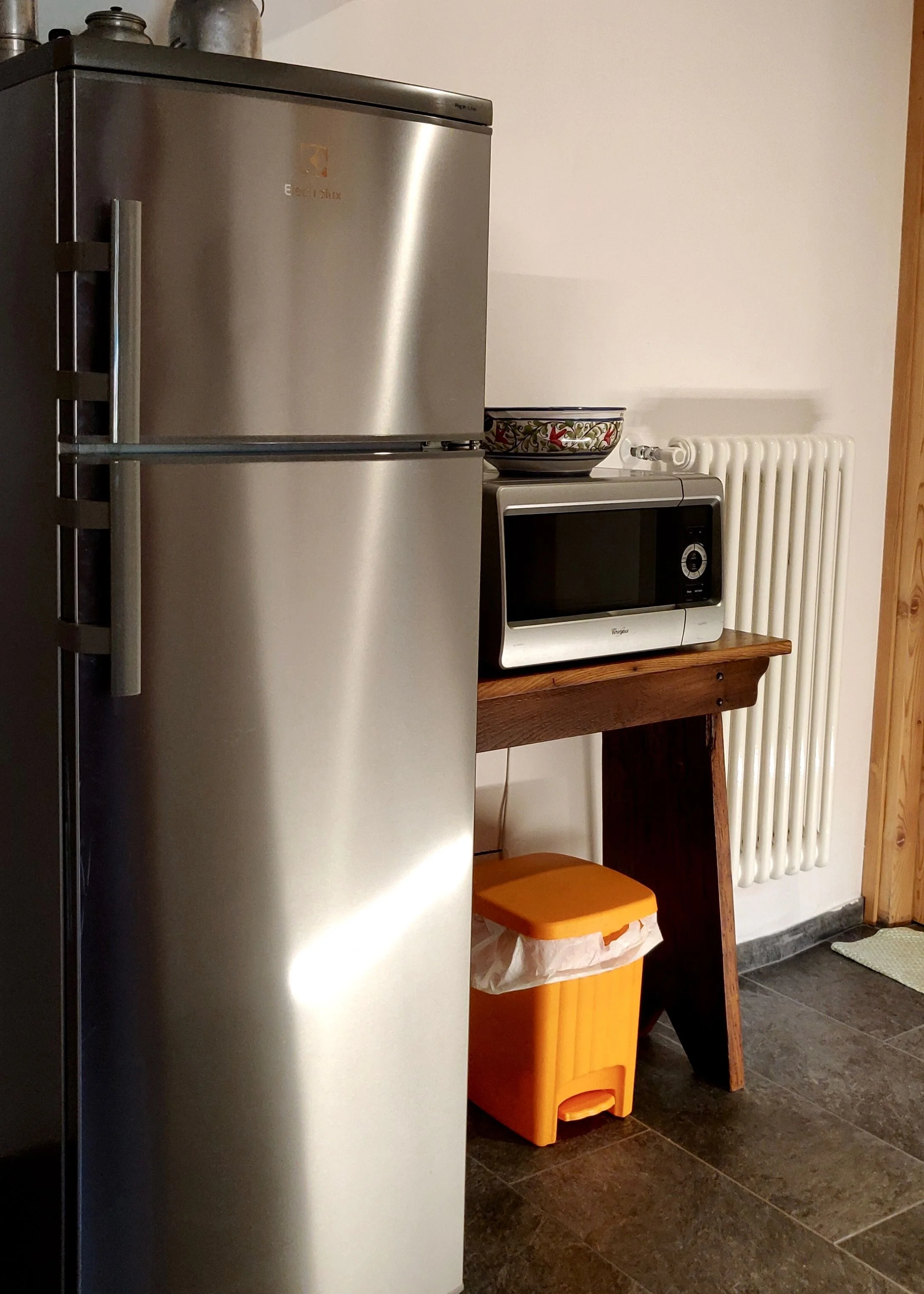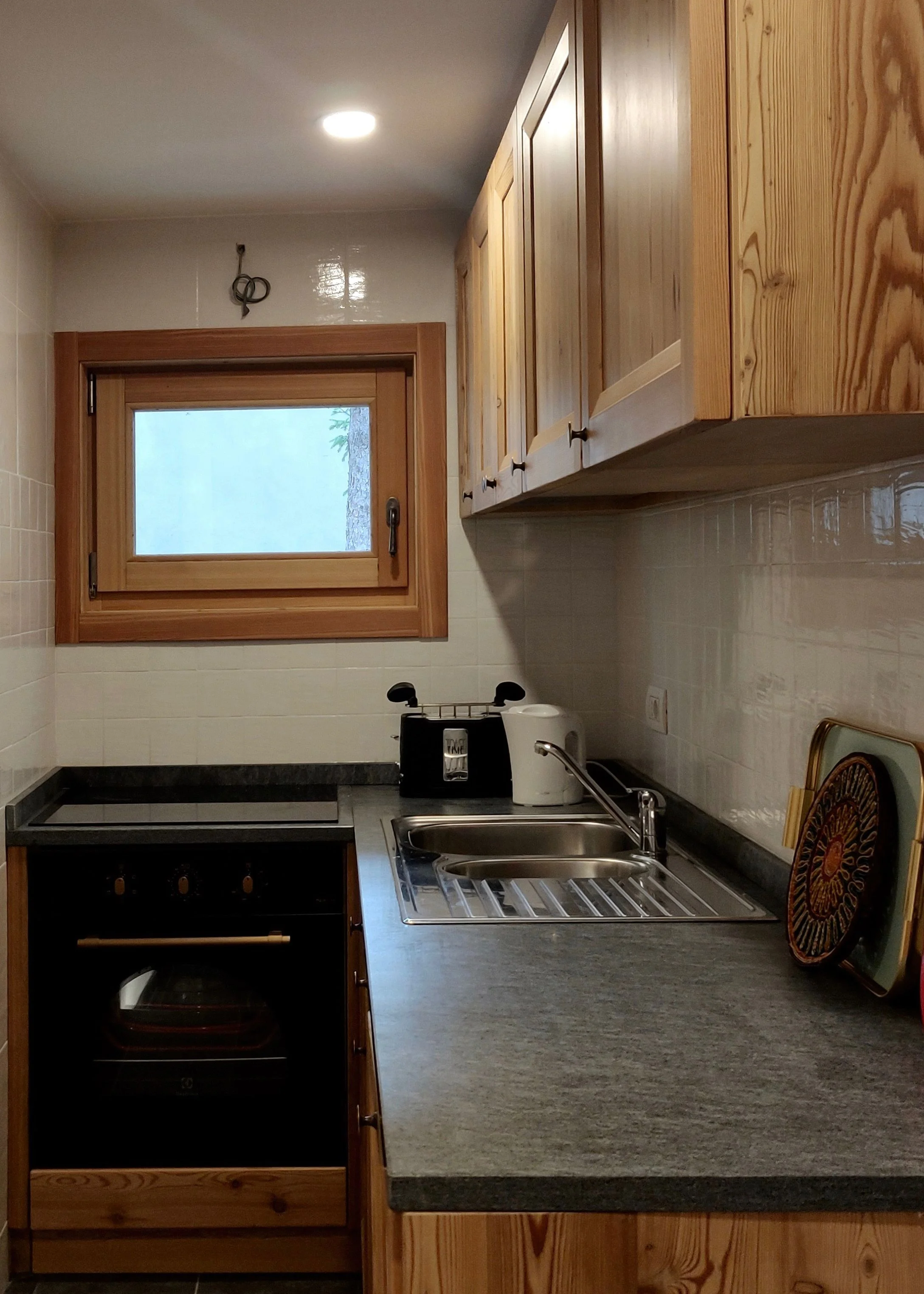 La cucina è stata rifatta interamente nel 2018 ed è completa di piastre ad induzione, forno, forno a microonde, lavastoviglie, bollitore, tostapane e frigorifero, oltre a pentole, piatti e stoviglie.