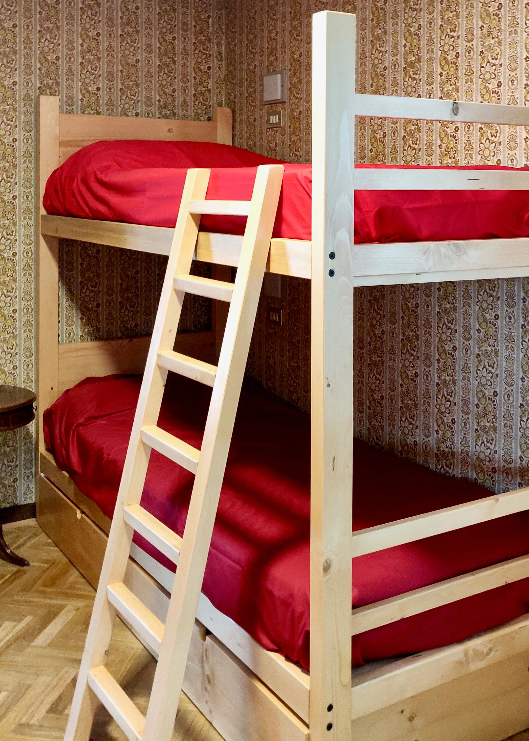La prima camera ospita 4 persone su 2 letti a castello artigianali.